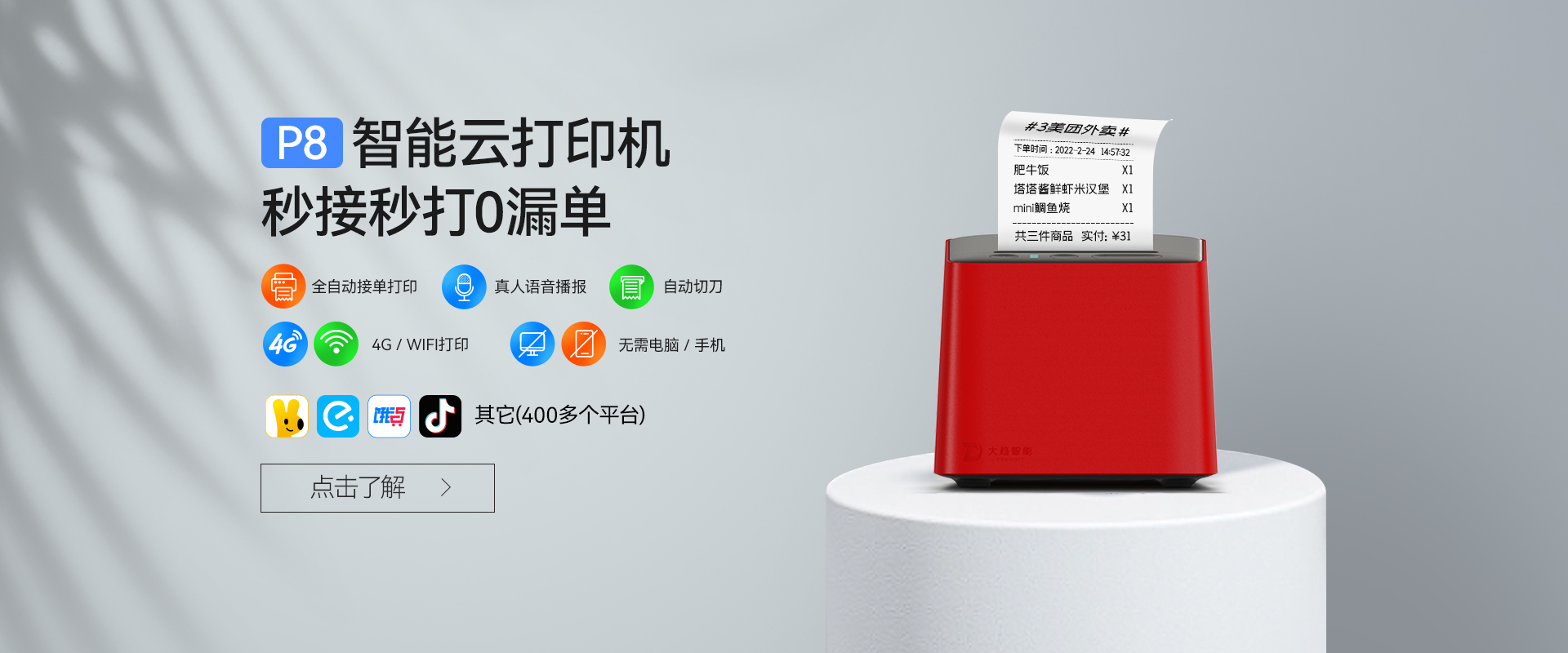 03我想同時(shí)接美團(tuán)、餓了么、抖音外賣單,用什么機(jī)器?